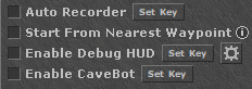 Auto Recorder: When enabled, the bot will automatically track and convert all your movements into waypoints. Configure the type of waypoints recorded via the CaveBot Settings - Auto Recorder section.
